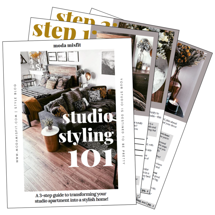 Also, if you live in a studio apartment and you want a free resource that will help you jumpstart your styling, I highly recommend you download my free Studio Styling 101 workbook!