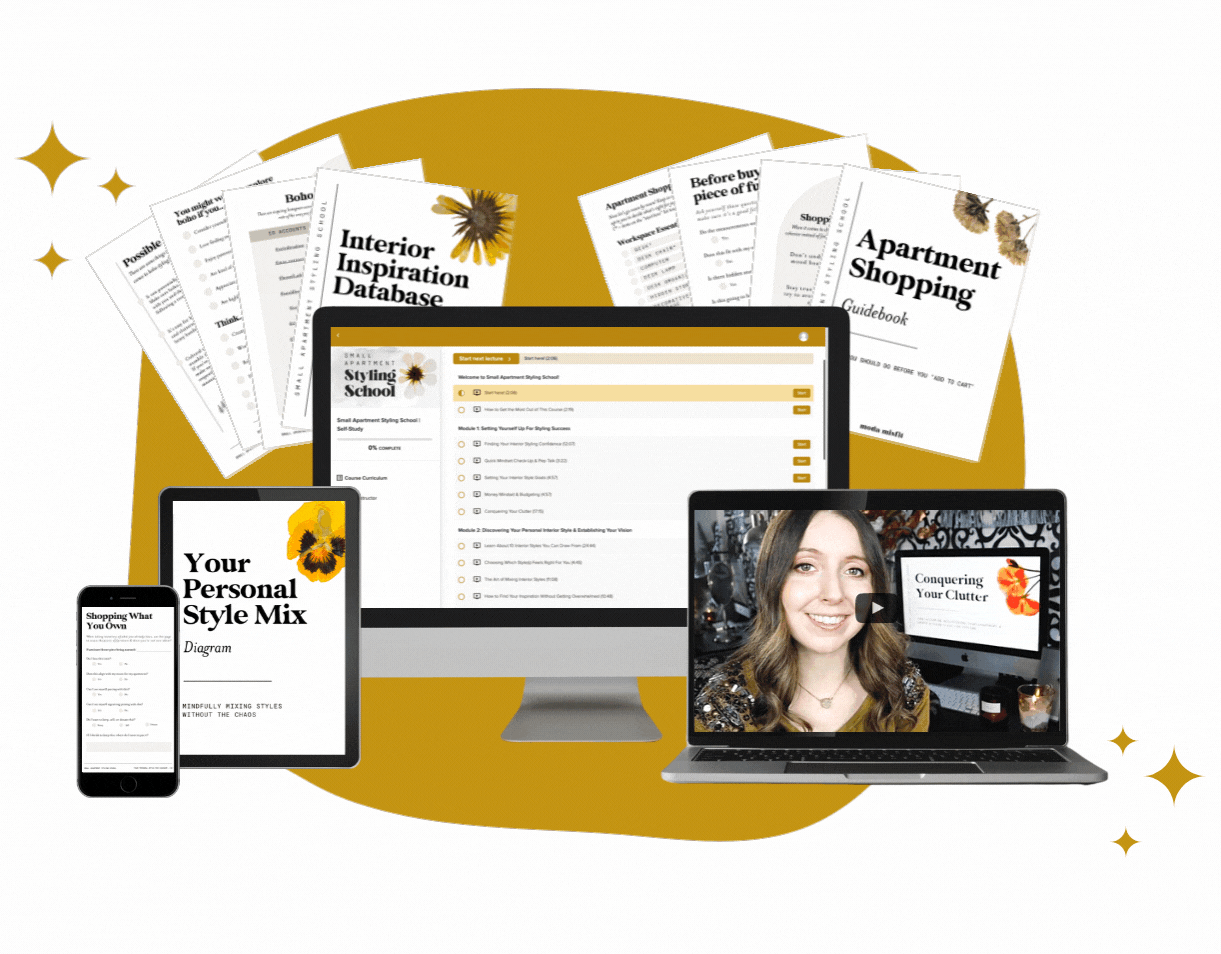 If you're wanting to dive deeper into learning about how to style your apartment step by step, that's where my online course Small Apartment Styling School comes in!