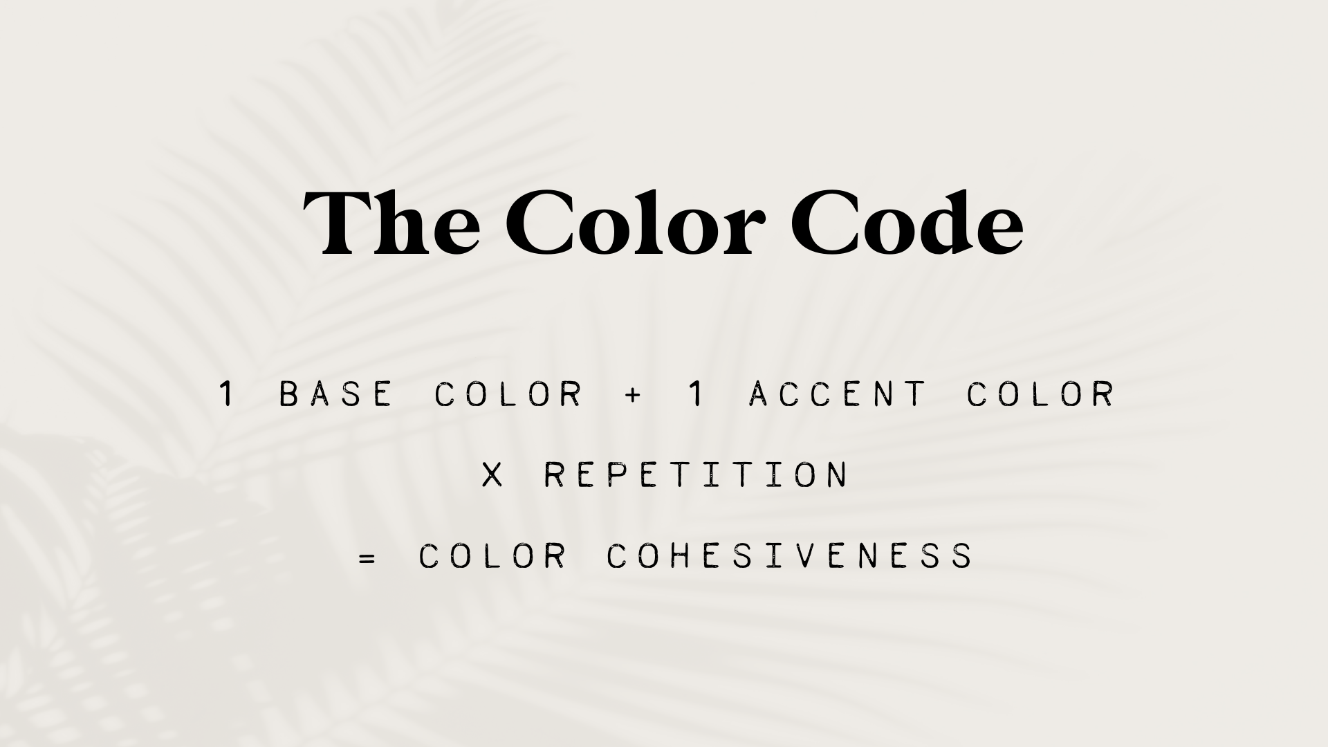 My Color Code is my formula for color cohesiveness. It's one base color + one accent color X repetition = color cohesiveness.